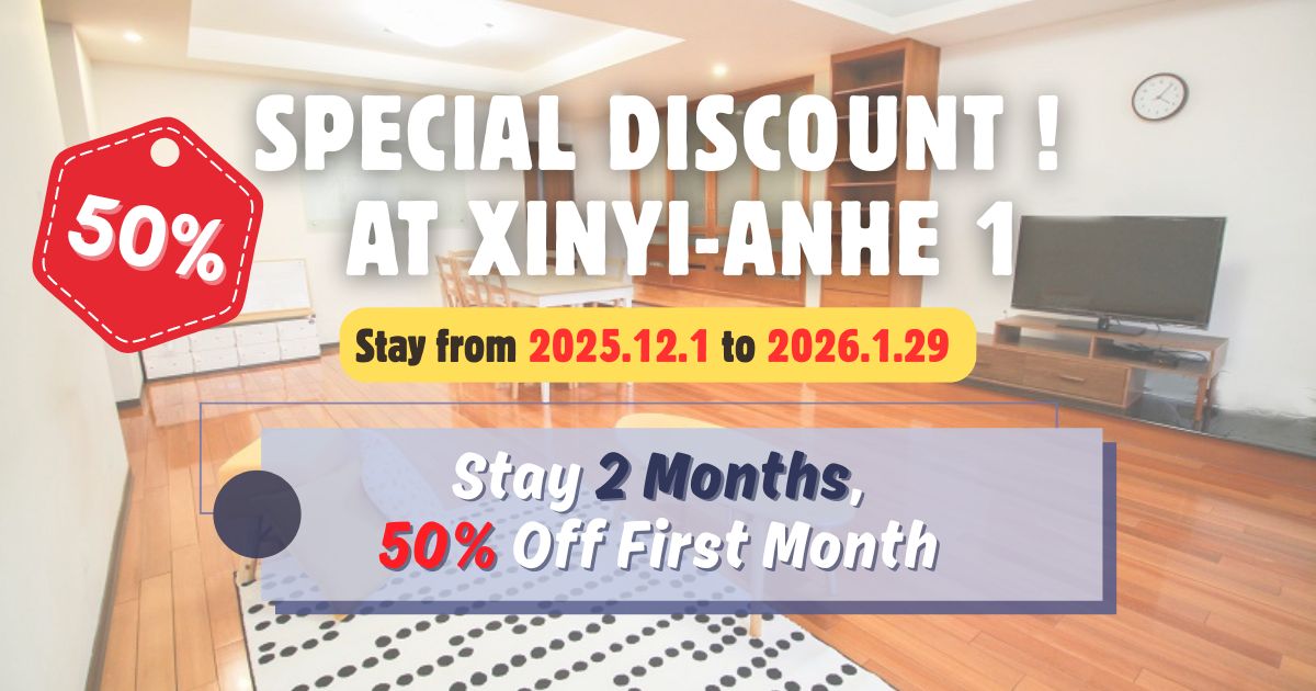 ■ Details: Stay for 2 months and receive a 50% rent discount for the first month.