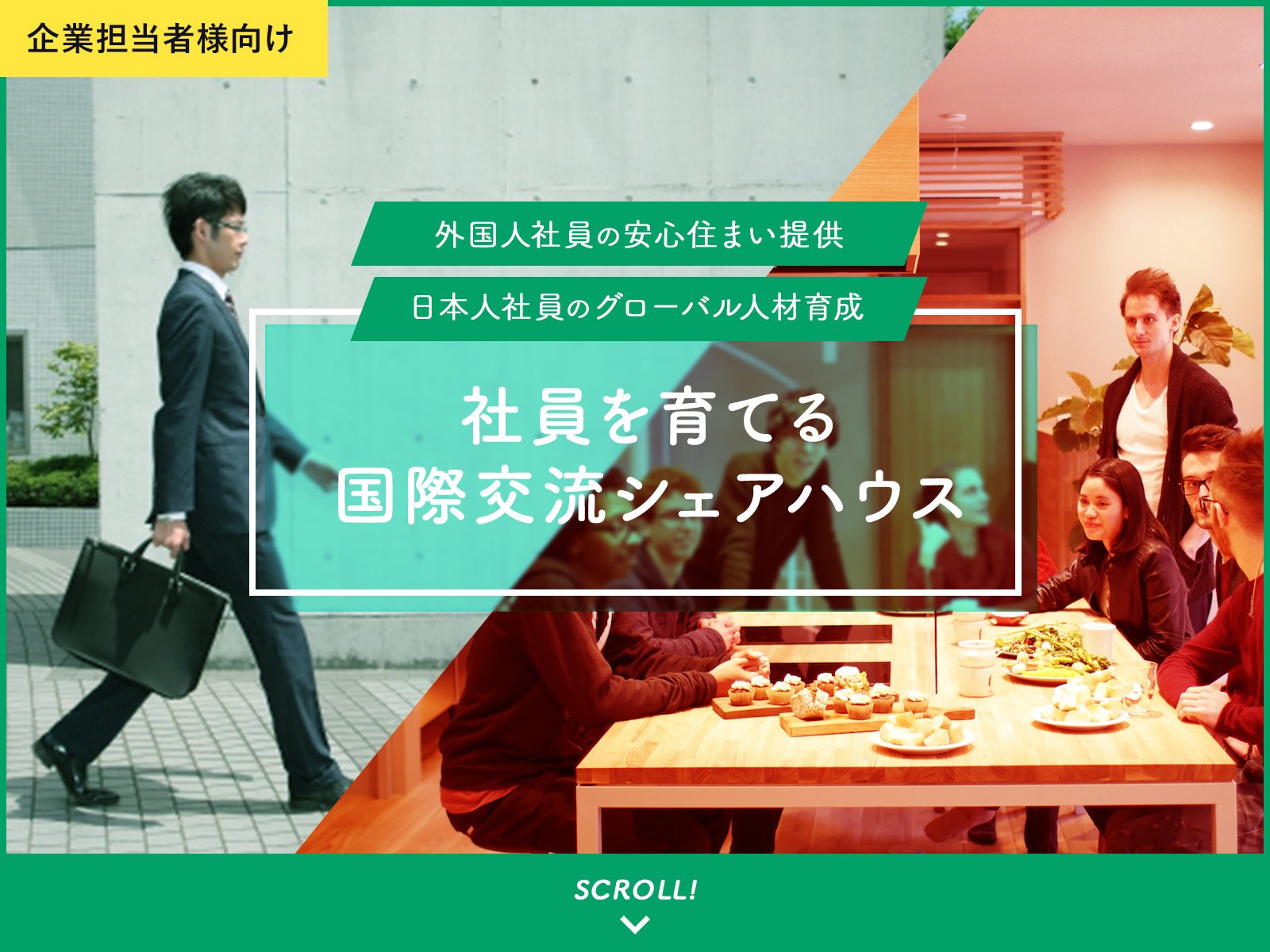 最近では、企業の新しい取り組みとして、日本人社員のグローバル人材育成という観点で、滞在型研修という新しいプログラムとしてボーダレスハウスを選んでいただいたり、外国人社員の滞在先としてボーダレスハウスを法人でご契約いただくケースも急増しています。