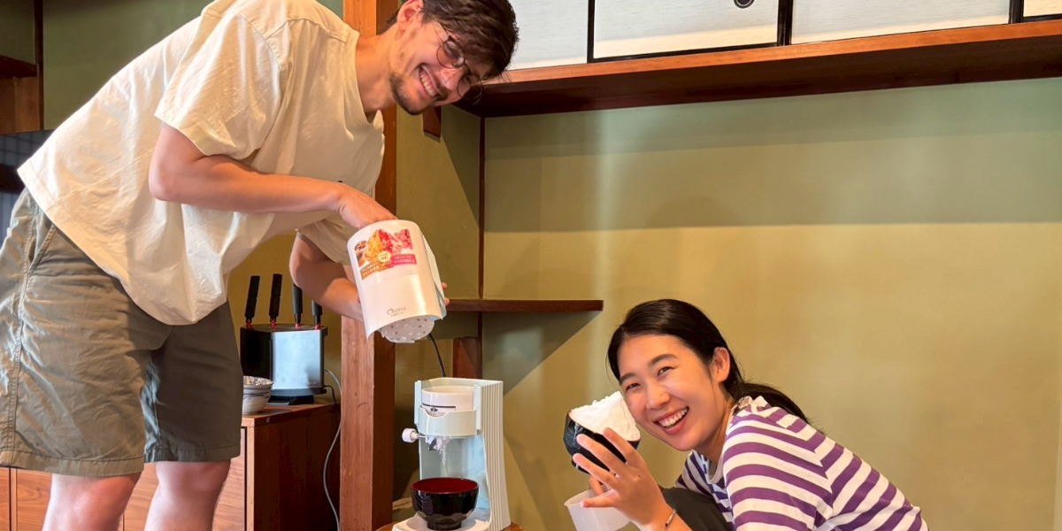 最後はリビングで、かき氷を片手にまったり交流タイム。