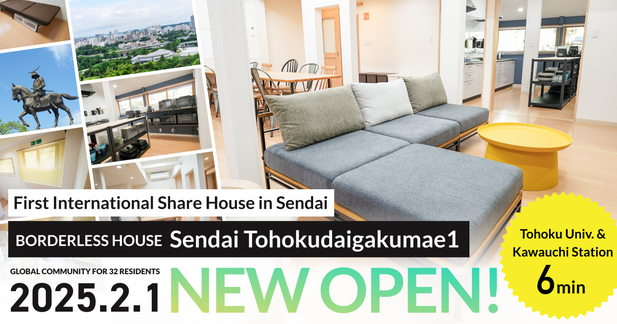 東北・宮城県仙台市で国際交流を楽しめる住まいを探している方へ、今年2月にオープンした国際交流シェアハウス『BORDERLESS HOUSE 仙台東北大学前1』はいかがでしょうか?詳しくはこちらからご確認ください。